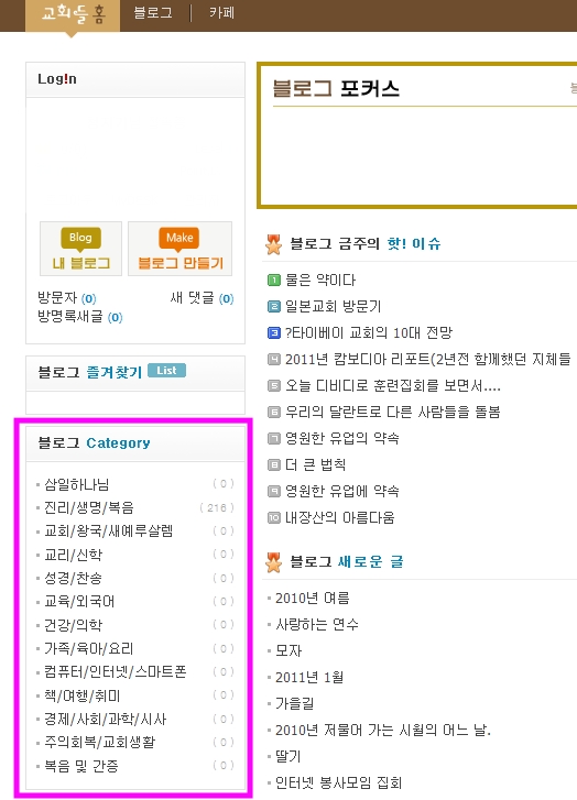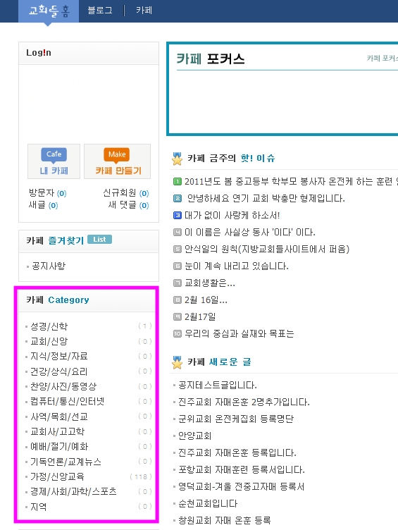 현재 카페 및 블로그 메뉴난 카테고리가 새롭개 개편되었습니다.