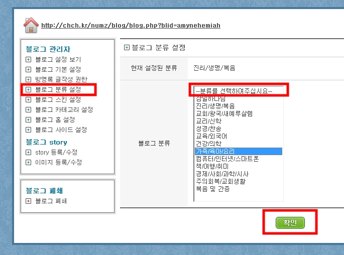기존에 사용하시는 블로그와 카페의 카테고리를 새롭게 수정등록해주시기 바랍니다.