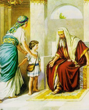 그와 그의 유모를 침실에 숨겨 아달랴를 피하여